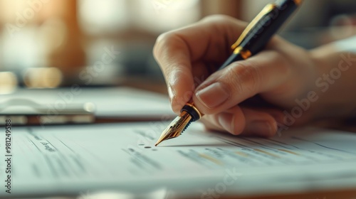 hand, pen, document, signing, signature, paper, desk, office, work, business, agreements, contract, legal, finance, professional, writing, closeup, detail, sharpened, elegant, formal, gold, ink, paperwork, important, deal, decision, task, completion, certificate, application, form, information, process, official, authorize, approve, businesswoman, businessman, employee, men at work, entrepreneur, meeting, serious