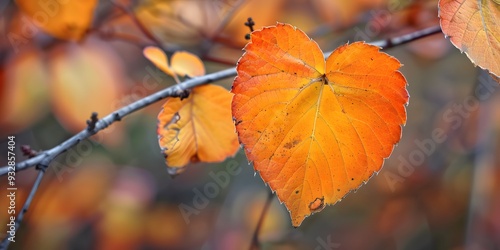 Close-up of a heart-shaped leaf with a blurred background of leaves and branches.