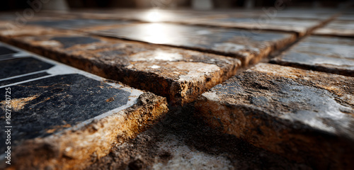solar, grime, dirt, panel, dust, clean, energy, photovoltaic, technology, sustainability, renewable, environment, performance, loss, efficiency, weathered, maintenance, sunlight, dusty, dirty, pollution, degradation, surface, power, sun, filth, dirt, electricity, system
