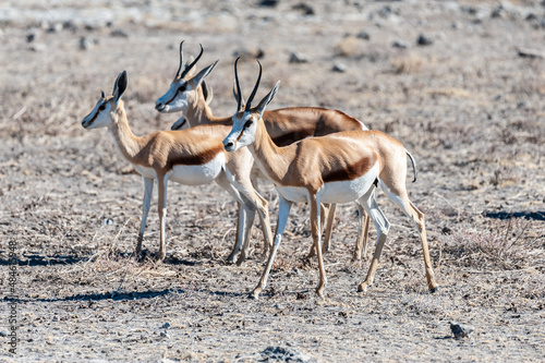 Closeup of a herd of Impalas - Aepyceros melampus- grazing on the plains of Etosha National Park, Namibia.