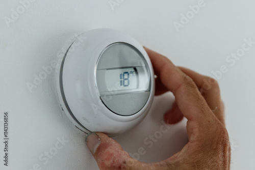 installation, interior design, electronic, hand, modern, thermostat, technology, photo, temperature, design, heating, white, shadow, daylight, building, object, device, architecture, room, light, real estate, finger, interior, grey, detail, digital, equipment, cooling, closeup, control, simple, touching, home, closeup