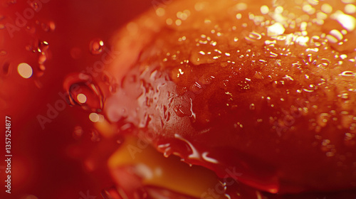 burger, bun, food, juicy, closeup, texture, detail, droplet, water, red, orange, yellow, delicious, fresh, tasty, epicure, appetising, closeup, macro, food photography, vibrant, foodstuff, healthy eating, gourmet food, cookery, cooking, kitchen, meal, eatery, fast food, receipe, image, quality, freshness, saturated, dripping, wet