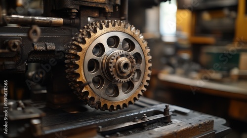 gear, gear, cog, cog, wheel, wheel, metal, machinery, mechanism, machine, old, antique, vintage, rust-eaten, worn, industrial, factory, printing, press, workshop, tool, equipment, manufacturing, production, technology, engineering, mechanic, craftsmanship, detail, macro, texture, surface, brown, grey, black, shadow, light, depth, sharpened, blur, background, abstract, design, pattern