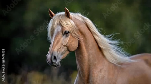 horse, equine, animal, mammal, portrait, head, mane, blond, light, brown, tan, cream, palomino, nature, outdoors, field, grass, farm, farm animal, domestic, countryside, rural, beauty, elegant, graceful, strong, powerful, muscular, healthy, eye, gaze, looking, profile, side, view, closeup, detail, sharpened, blurred, background, bokeh, sunlight, pasture, equestrian, riding, breed, pedigree, thoroughbred, warmblood