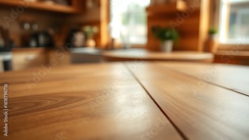 Close-up of a natural wood table with warm tones and subtle grain, evoking rustic charm.