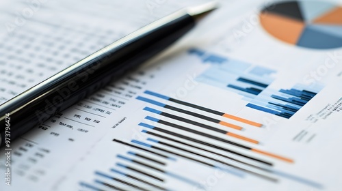 pen, black, silver, paper, chart, graph, bar, blue, financial, analysis, datum, report, business, statistic, accounting, investment, economy, trend, performance, progress, growth, market, strategy, research, document, office, desk, macro, sharpened, detail, white, number, line, table, figure, spreadsheet, visual, abstract, pattern, diagonal, grey, orange