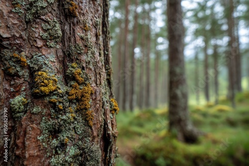 forest, pine, tree, trunk, bark, lichen, moss, texture, closeup, nature, outdoors, timberland, tree, closeup, detail, scenic, landscape, wood, environment, growth, detail, wildlife, organism, ecology, environmentally, photo, image, natural, organic, macro, blur, background, depth, sharpened, soft, damp, wet, green, brown, grey, yellow, gold, rough, pattern