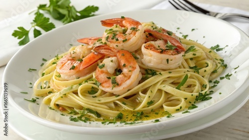 shrimp, pasta, scampi, linguine, seafood, italian food, dinner, food, dish, plate, parsley, garlic, butter, lemon, white wine, eatery, cookery, epicure, delicious, meal, fresh, homemade, cooked, healthy, receipe, closeup, macro, texture, detail, surface, bright, isolated, style, photo, presentation, elegant, table, wooden, eating, culinary, gastronomy, favor, chef, kitchen, fine dining, food photography, nourishment