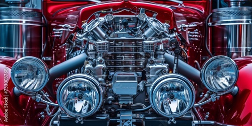 truck, car, engine, vehicle, transportation, motor, metallic, automotive, automobile, technology, auto, chrome, powerful, part, mechanical, fuel, machine, speed, shiny, design, supercharger, performance, show, clean, red, tuning, turbo, steel, industry, new, equipment, muscle, fast, classic, repair, race, detail, sport, intake, hood, hot rod, filter, old, service, horsepower, carburetor