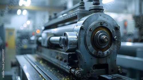 Closeup of a printing press showcasing modern technology and precision in action. Concept Printing Press Technology, Precision Engineering, Modern Machinery, Industrial Innovation