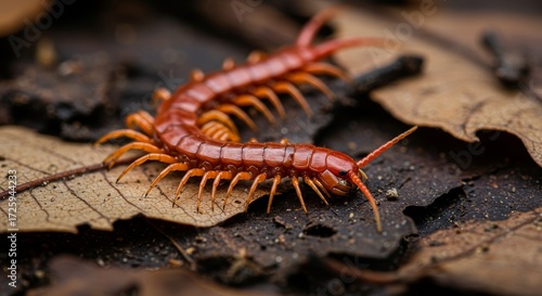 centipede, insect, arthropod, wildlife, nature, predator, poisonous, venomous, dangerous, macro, segmented, leg, orange, brown, forest, leaf, ground, tropical, crawling, close, up, wild, creature, invertebrate, habitat, detail, exoskeleton, fauna, outdoors, environment, exotic, rainforest, scarey, creepy, bug, animal, closeup, natural, textured