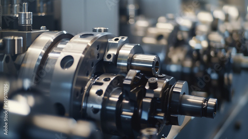 Close-up of a robotic arm assembling precision metal parts in a high-tech factory, with soft lights highlighting industrial efficiency