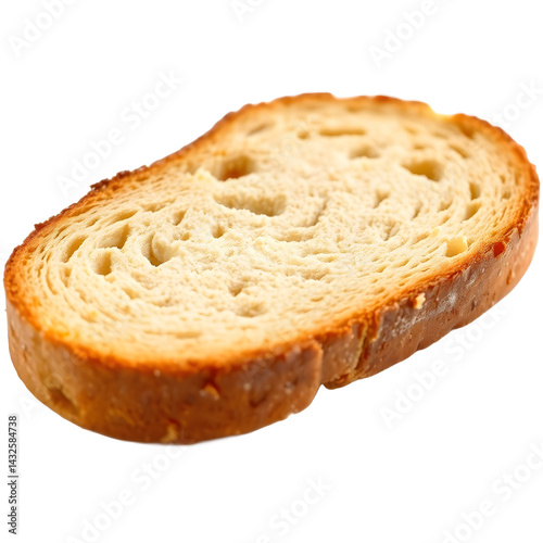 Close-up of a single slice of toasted bread, showcasing its golden-brown crust and soft interior.