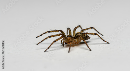 spider, arachnid, insect, invertebrate, 8, leg, brown, tan, white, background, studio, photo, macro, closeup, detail, nature, wildlife, creepy, crawly, small, tiny, animal, creature, fauna, abdomen, eye, hair, bristle, body, segmented, articulation, joint, movement, stillness, still, life, image, picture, photo, visual, representation, arthropod, hunting