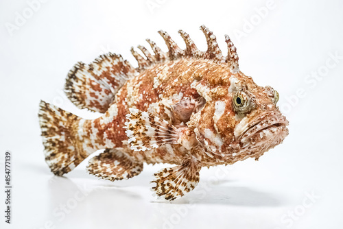 spiny, lionfish, fish, marin, life, underwater, ocean, sea, coral, reef, tropical, exotic, wildlife, nature, animal, creature, fin, scale, spine, venomous, predatory, camouflage, white, background, closeup, macro, detail, texture, colours, vibrant, beauty, aquatic, biology, zoology, scientific, research, education, conservation, endangered, species, biodiversity, ecosystem, environment, studio