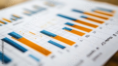 Close-up of a stock market analysis chart with a mix of bar graphs and line graphs highlighting key data