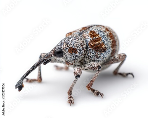 weevil, insect, macro, photo, closeup, nature, wildlife, bug, arthropod, insect, detailed, animal, fauna, white background, brown, grey, pattern, snout, leg, exoskeleton, closeup, hi-res