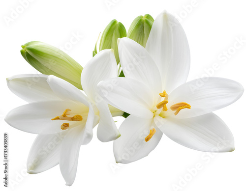 Close-up of a tuberose flower with delicate petals, isolated on transparent background, PNG