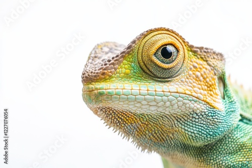 chameleon, reptile, closeup, macro, animal, wildlife, nature, detail, eye, skin, texture, colours, vibrant, green, yellow, blue, exotic, unique, beautiful, fascinating, amazing, bright, pattern, background, white