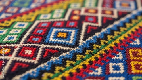 ornate, motif, border, diamond, intricate, symmetry, knot, ornamental, threaded, fiber, shape, vibrant, upholstery, many-coloured, arrangement, white, embroidery, thread, red, threaded, material, black, artisan, macro, blue, textile, clothes, fashion, decorative, detail, decor, weaving, yellow, square, surface, fabric, green, composition, wall, hand-made, accessory, geometric, craft, traditional, closeup, art, design, pattern, colourful