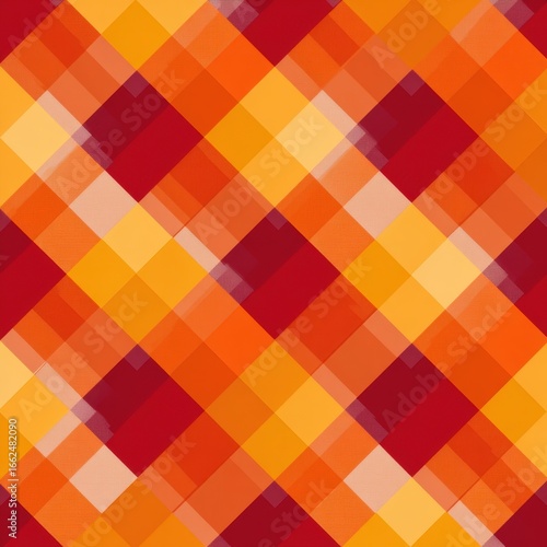 Close-up of a vibrant, colorful plaid fabric with a classic checkered pattern in warm tones
