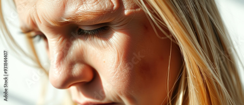 Close-up of a Woman's Face with Wrinkles and Blonde Hair