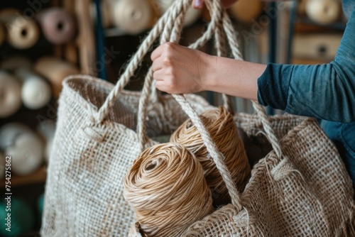 Close-up of a woman's hand holding craft bag