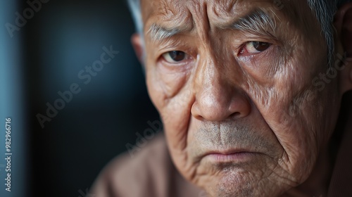 Close-up of a worried senior asian man with aging skin, showing wisdom and experience