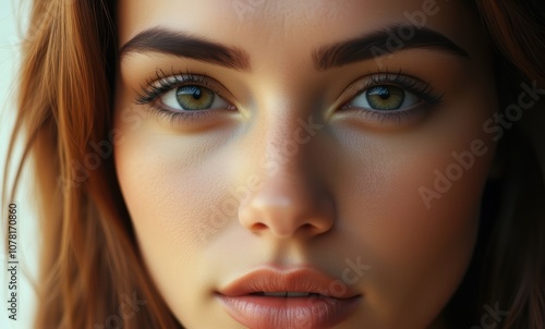 Close-up of a young woman with green eyes
