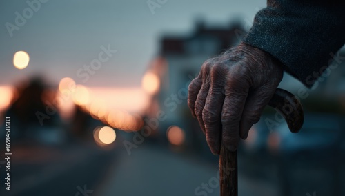 aged, hand, walking, stick, dusk, twilight, street, city, blurred, sharpened, wrinkled, weathered, skin, support, assistance, elderly, care, gentle, strength, fragility, patience, wisdom, loneliness, solitude, hope, acceptance, dignity, tranquil, peaceful, moment, photo, close, up, hand-held, help, travel, life, memory, passing, time, bequest, life events, connection, humanity, touch, comfort, respect, caring, devotion