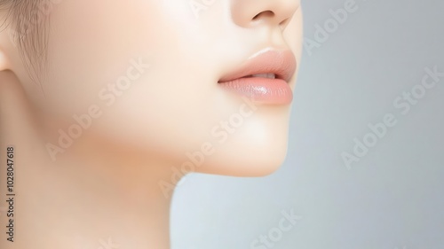 Closeup of an Asian woman s glowing, smooth skin, enhanced by natural outdoor lighting outdoor light, smooth complexion, glowing skin