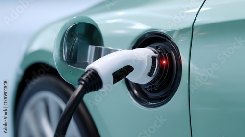Close-up of an electric vehicle charging with a sleek design and modern connection interface, showcasing eco-friendly technology.
