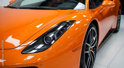car, sport, orange, glossy, headlamp, wheel, detail, automobile, luxury, vehicle, modern, design, exterior, close, up, polished, smooth, sharp, line, powerful, speed, fast, bright, clean, detailing, high, quality, showroom, automotive, performance, technology, detail