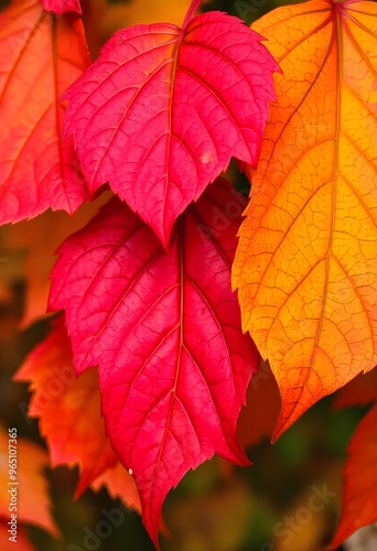 Close-up of autumn foliage, showcasing the intricate veins and textures.