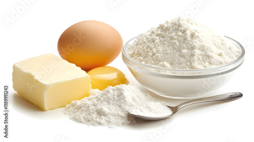 flour, butter, egg, yolk, baking, cooking, ingredient, receipe, food, white background, isolated, closeup, pastry, bread, cake, dessert, cookery, culinary, kitchen, meal, delicious, healthy, fresh, natural, organic, homemade, wheat, grain, dairy, protein, spoon, bowl, glass bowl, albumen, egg yolk, baking powder, sweet, tasty, cream, food photography, still life, high-quality, professional, studio shot, clean, bright