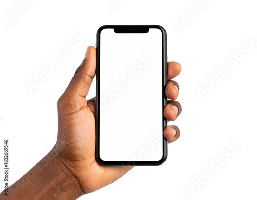 Close-Up of Black Hand Holding Smartphone, Isolated on Transparent Background