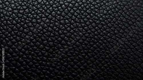 Close-up of black leather with fine grain texture, emphasizing its smooth and luxurious quality.