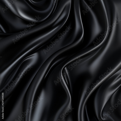 Close-up of black satin fabric draped elegantly, creating smooth, flowing textures