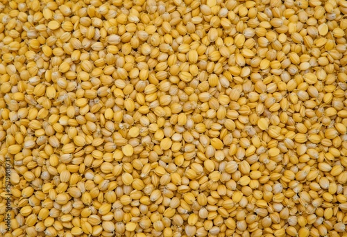 Close-Up of Bright Yellow Grain Seeds Spread on Surface