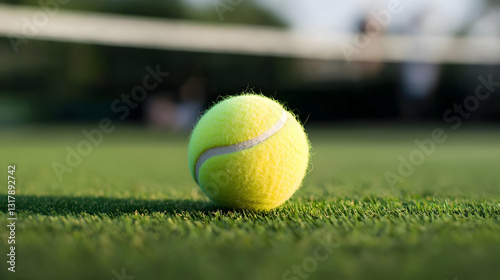 tennis, ball, sport, game, court, grass, green, yellow, competition, match, sport, equipment, activity, recreation, tournament, athlete, athletic, serve, hit, forehand, backhand, volley, lob, net, baseline, swing, grip, racquet, summer, practice, training, fitness, exercise, fun, leisure, closeup, bright, vibrant, sunny, daytime, sharpened, blur, background, copy space, action, energy, championship, winner