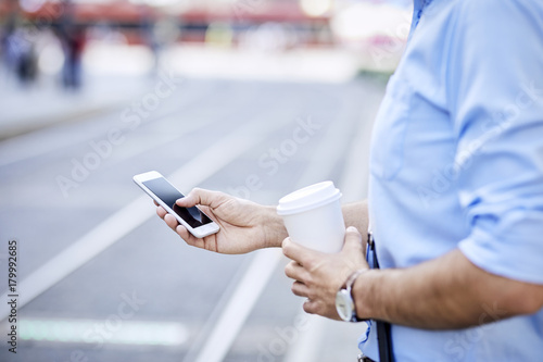closeup, businessman, holding, outdoors, business, lifestyle, reading, wireless, message, information, day, smartphone, hand, display, urban, connection, global positioning system