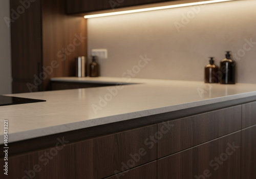 cabinetry, countertop, stone, polished, craftsmanship, minimalist, design, warm, lighting, depth, surface, detail, interior, modern, sleek, material, premium, elegant, clean, line, space, stylish, ambience, decor, home, contemporary, texture, luxury, refined, organised, atmosphere, functional, modernism