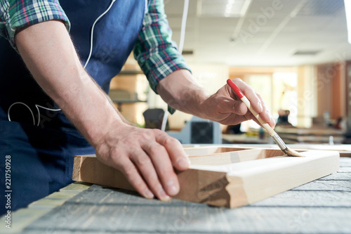 brush, carpenter, carpenter's shop, craftsman, detail, joinery, man, factory, manufacturing, occupation, 1, people, person, professional, varnish, wood, wooden, woodwork, woodworker, working, workplace, workshop, hand-made