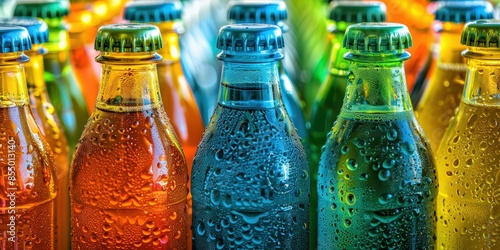 bottle, glasses, water, droplet, condensation, colourful, vibrant, refreshing, cool, closeup, macro, texture, pattern, liquid, beverage, drink, soda, beer, juice, green, blue, yellow, orange, red, brown, transparent, shiny, wet, smooth, crisp, bright, background, closeup, photo, still life