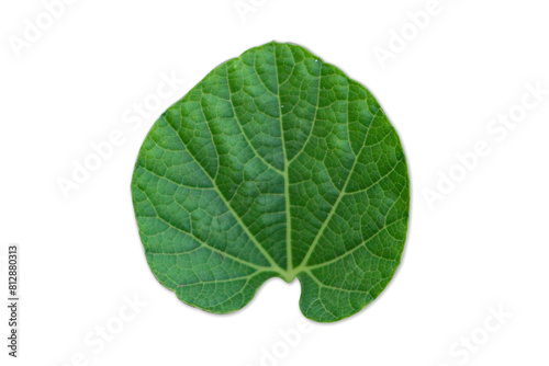Close-up of contrasting squash leaves on white background. Green vines of gourds and bottle gourds.