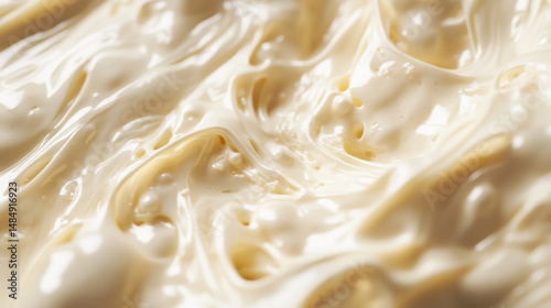 Close-up of creamy mayonnaise texture, showcasing smooth swirls and rich color
