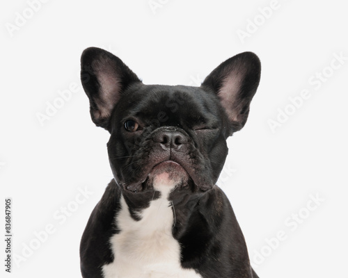 closeup of cute french bulldog winking
