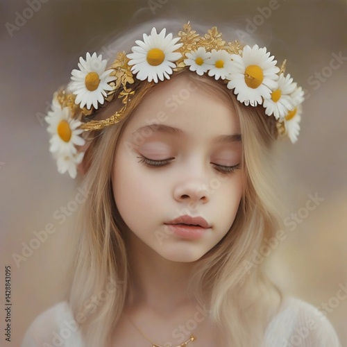 closeup, cute, girl, closed, eye, chaplet, daisy, beauty, woman, children, flower, hair, flower, face, spring, fashion, model, person, people, smiling, children, smile, childhood, baby, 1, little, summer, pink, make-up, nature