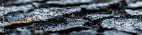 ember, heat, ash, earth, asphalt, ground, rock, stone, texture, closeup, detail, rough, dry, surface, crack, black, brown, orange, burned, scorched, depth of field, macro, photo