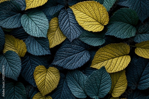 Close-up of Dark Green and Yellow Leaves with Detailed Veining